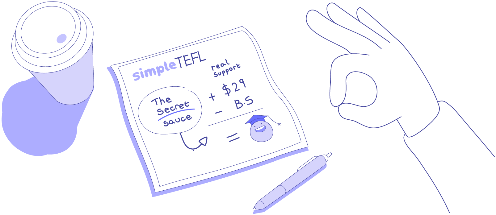 We offer a money-back guarantee. If simpleTEFL isn’t for you, email support@simpletefl.com within 14 days of purchase.